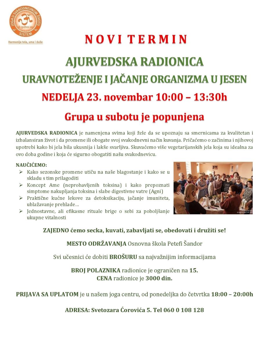 AJURVEDSKA RADIONICA - NOVI TERMIN