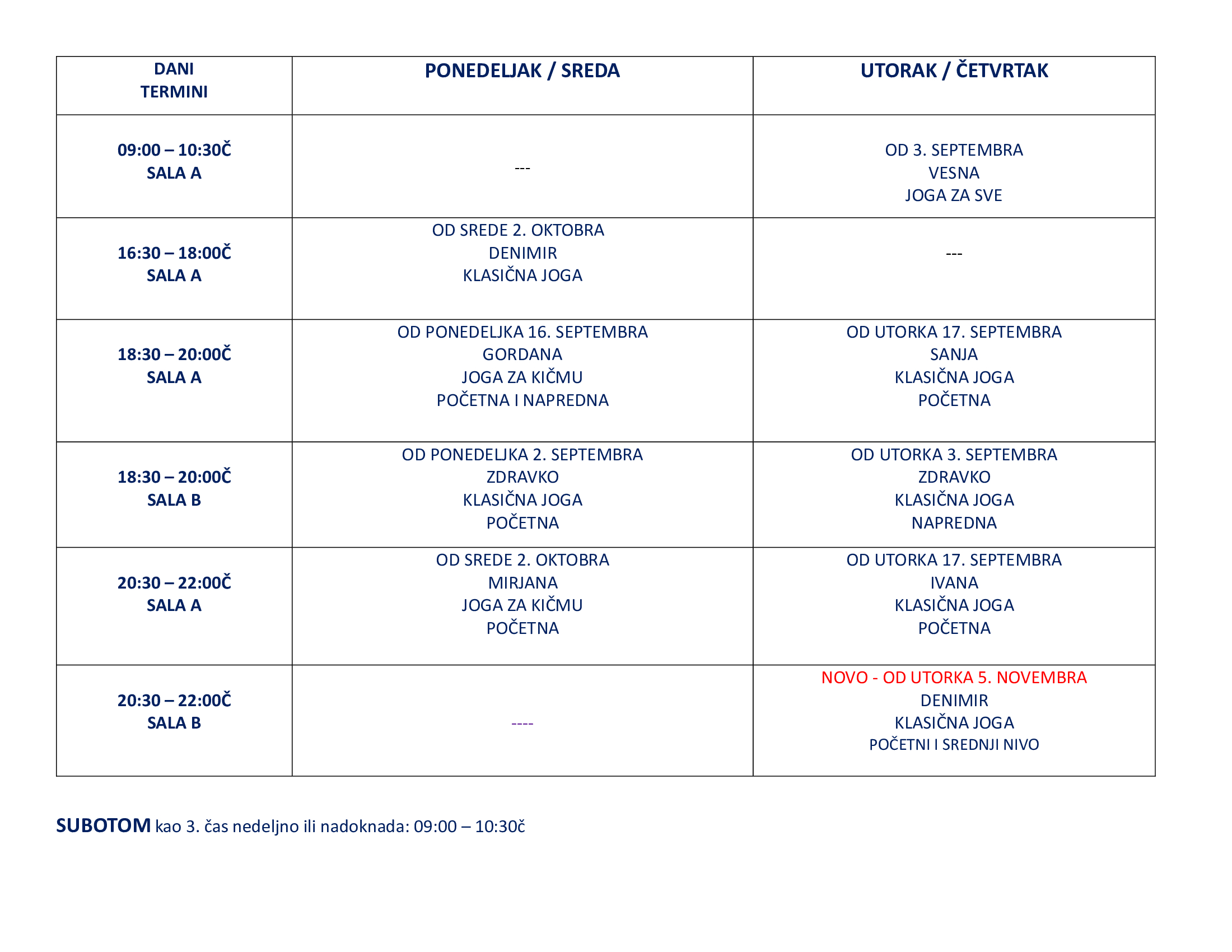 PRIJAVA JE UZ UPLATU od 2. septembra, u našem joga centru, od ponedeljka do četvrtka od 18:00 - 22:00č