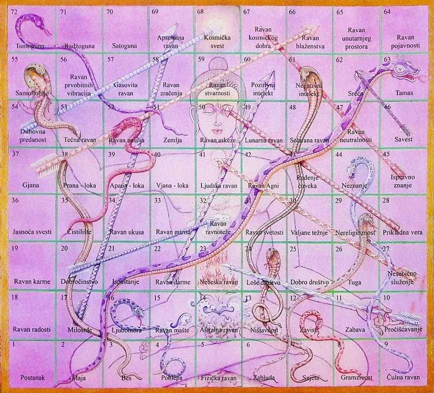 Svaka akcija izaziva reakciju. Vrsta akcije određuje vrstu reakcije. Negativne akcije hvataju igrača u klopku, pozitivne ga oslobađaju. „Kako seješ, tako ćeš i žnjeti“ - ova izreka ukazuje na zakon karme. Pravi zadatak igrača je da raspozna te karme i njihov uticaj na njegovo biće. Kako se igrač glumac kreće od polja do polja, od kvadrata do kvadrata, on počinje da razume obrasce u svom sopstvenom životu, koji se sve jasnije pokazuju kako njegovo razumevanje igre napreduje.