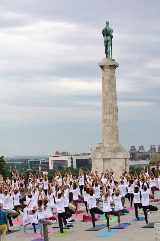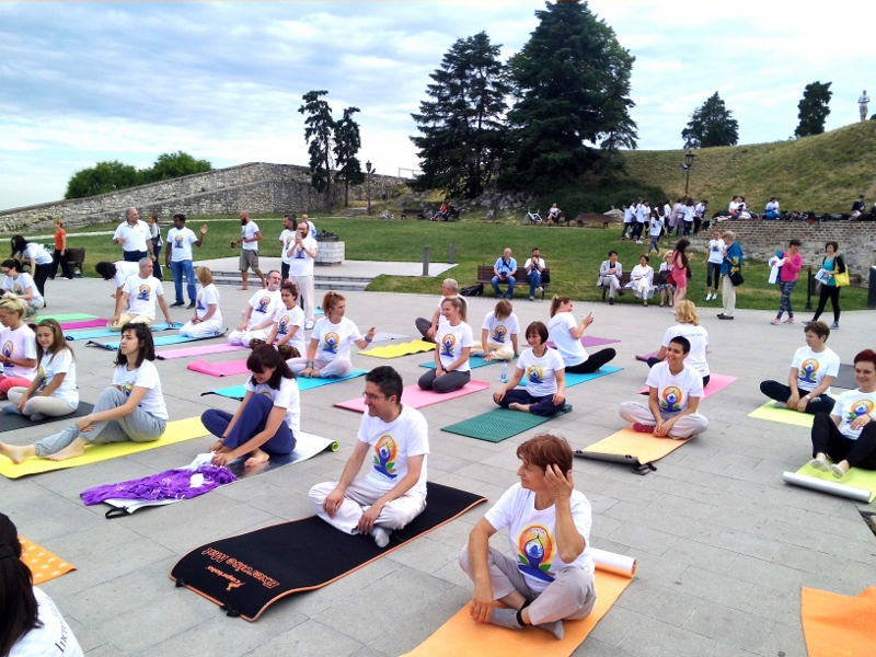 Obeležavanje trećeg Međunarodnog dana joge smo započeli 17. juna javnim časom Joge na Kalemegdanu, u Beogradu u organizaciji Ambasade Republike Indije i njene Ekselencije gđe. Narinder Chauhan. U predivnom prostoru i pozitivnoj energiji vežbanje je svim učesnicima donelo radost i lepotu joge.